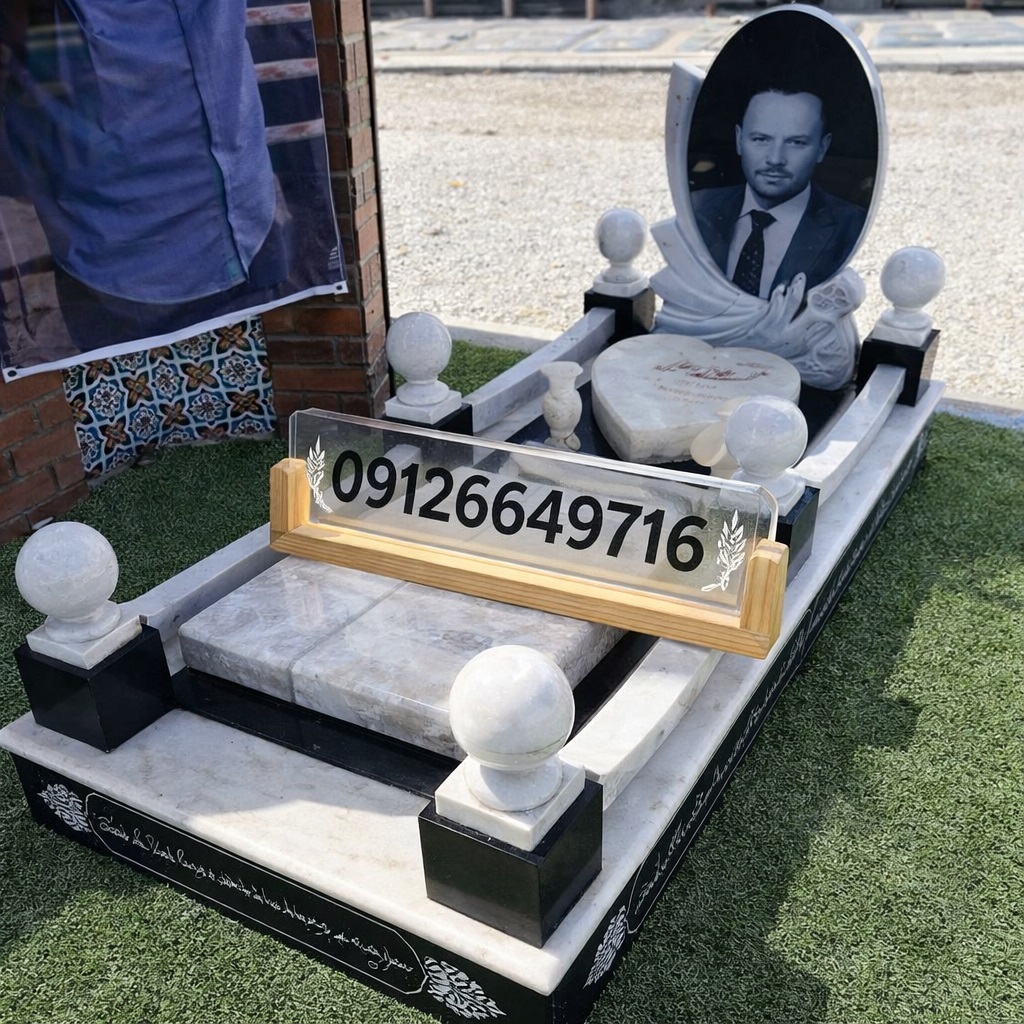 سنگ قبر لاکچری ترکیبی مرمر و سفید قروه – کد 77