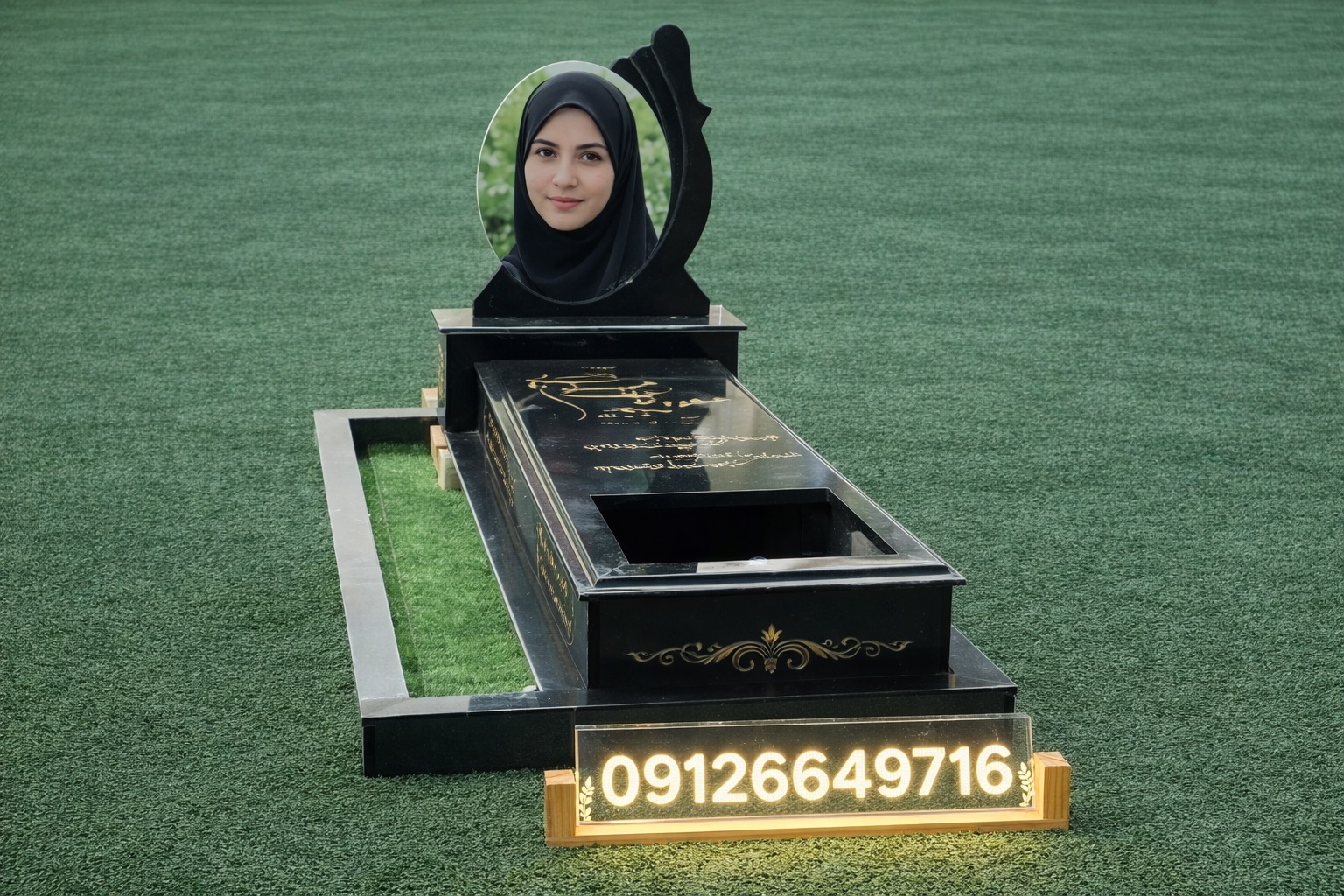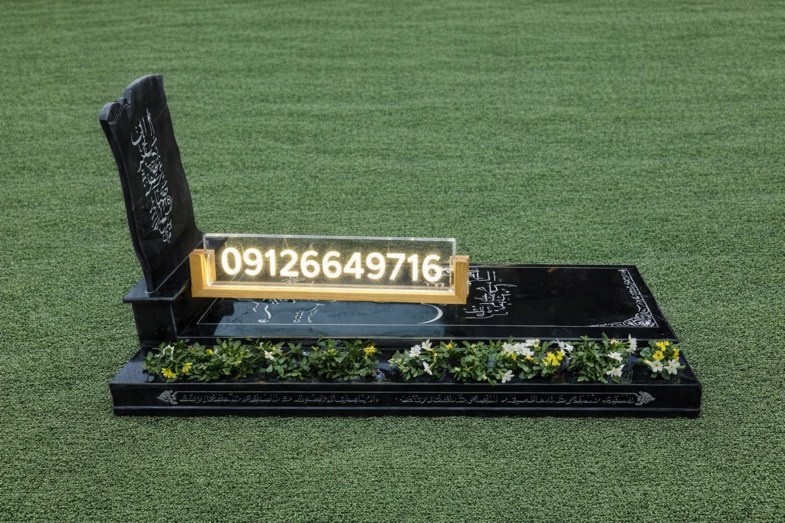 سنگ قبر خاص طرح باغچه ای مشکی براق- کد 51